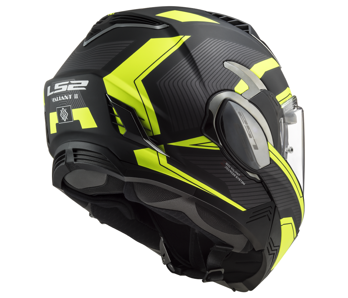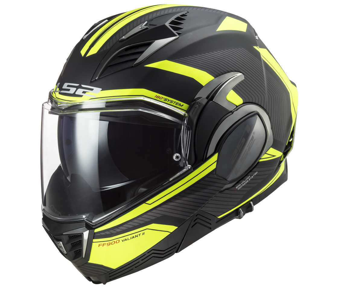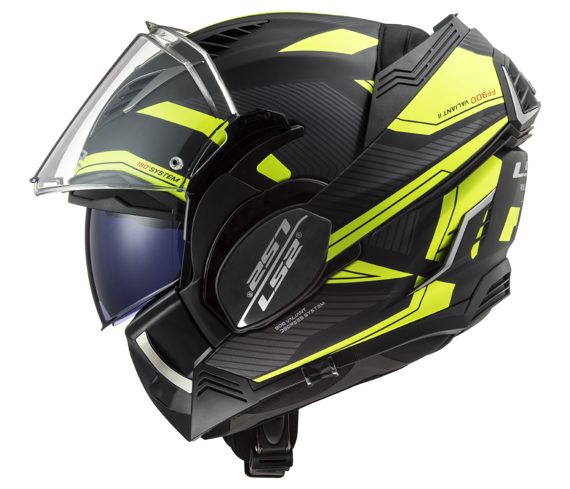 Nová generácia preklápacej prilby Valiant prináša moderné tvary, praktickú slnečnú clonu a jeden z najpremyslenejších mechanizmov preklápania. Valiant II v sebe spája výhody integrálnych a otvorených heliem. Bradu vrátane plexi možné jediným pohybom kompletne zaklopiť dozadu a plnohodnotná integrálne helma sa tak ľahko zmení na otvorenú s nízkym aerodynamickým odporom.