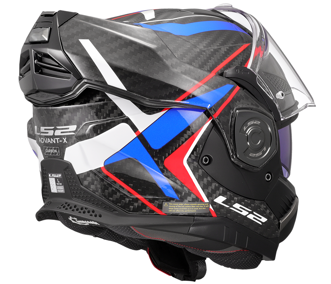 Špičková karbonová překlápěcí přilba Advant X Carbon je vylepšeným pokračováním nejúspěšnější a nejprodávanější přilby LS2 - Valiant II. Přilba je určena pro cestování na střední a dlouhé vzdálenosti, každodenní ježdění i do města. Vylepšená konstrukce, lepší ergonomie a přepracovaný mechanismus překlápění brady Flip 180. Přilba má duální homologaci P/J ECE 22.06.