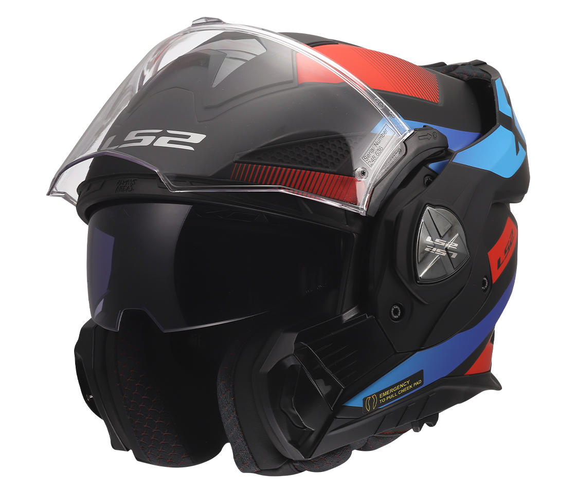 Preklápacia prilba Advant X je evolúciou modelu Valiant II - najúspešnejšie a najpredávanejšie prilby LS2. Helma ideálna pre bežné jazdenie, cestovanie na stredné a dlhé vzdialenosti a do mesta je vyrobená pokročilou technológiou HPFC s vylepšeným dizajnom pre lepšiu ergonómiu. Mechanizmus preklápania brady Flip 180 je novo prepracovaný. Nová duálna homologácia P/J ECE 22.06.