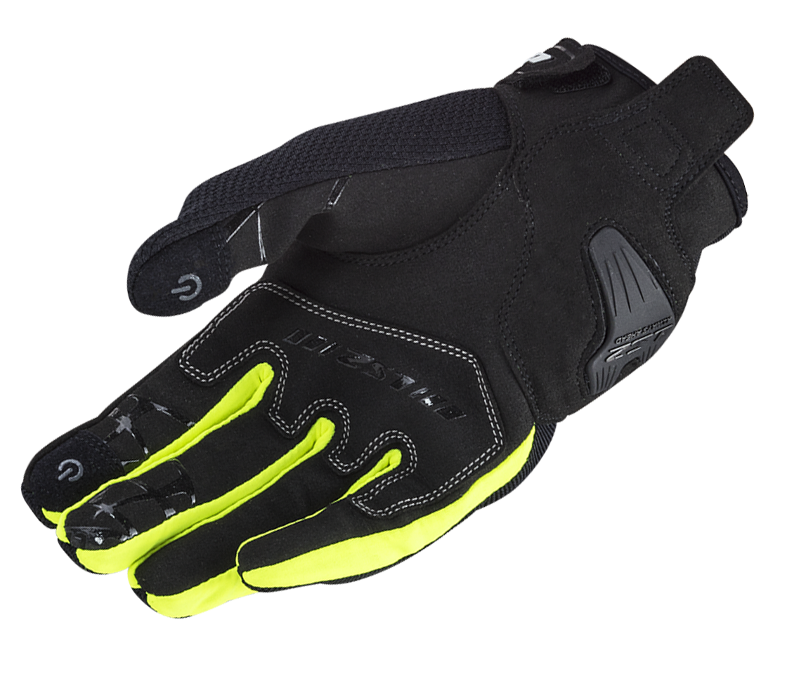 Motocyklové rukavice s chráničmi kĺbov a prstov a technológiou Touchscreen pre jednoduchú komunikáciu so smartfónom.