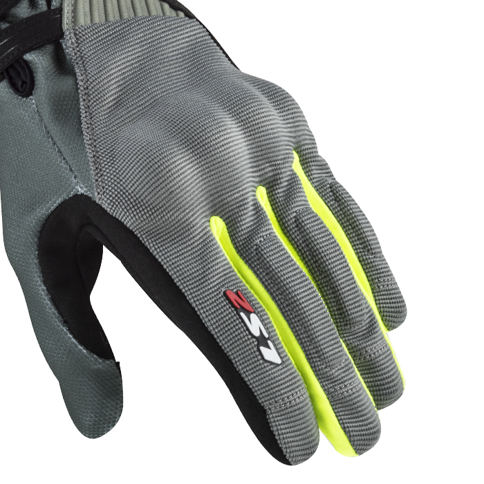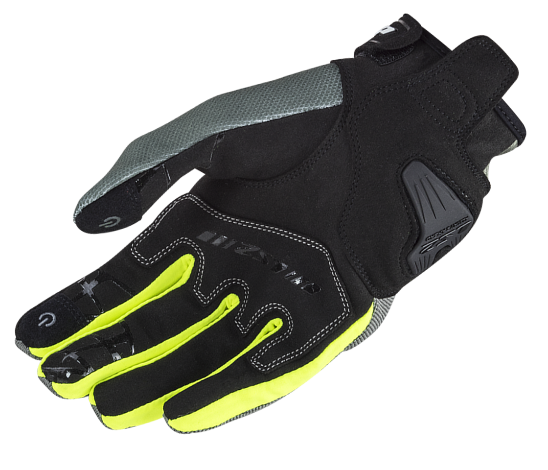 Rukavice s tvrdými chráničmi kĺbov, zosilnením na malíkovej hrane a pevným protektorom na dlani. Prsty chránené penovou výstužou. Zapínanie na suchý zips. Pružný materiál 4-Way Spandex. Silikónová potlač na dlaniach a prstoch.