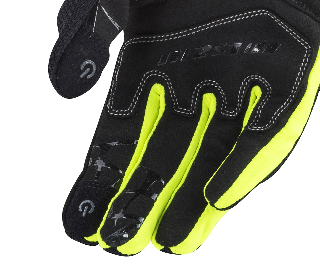 Motocyklové rukavice s chráničmi kĺbov a prstov a technológiou Touchscreen pre jednoduchú komunikáciu so smartfónom.