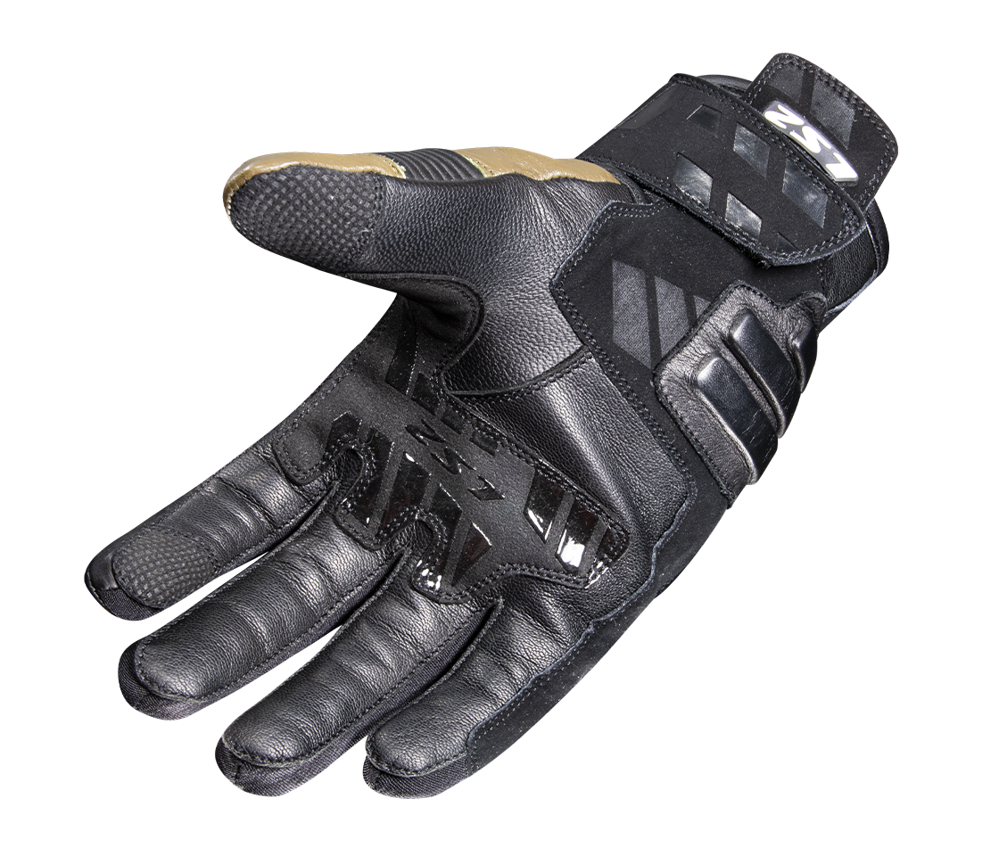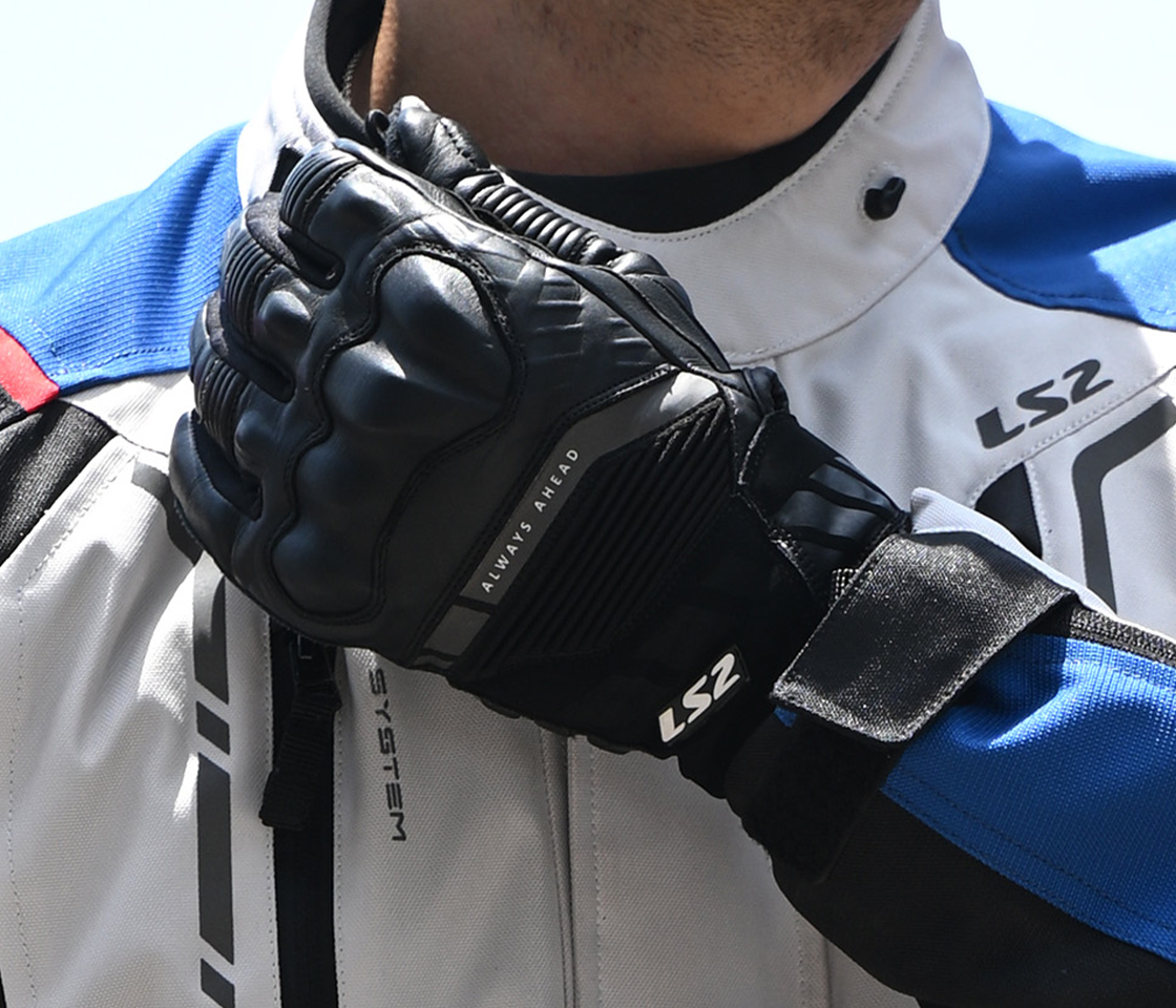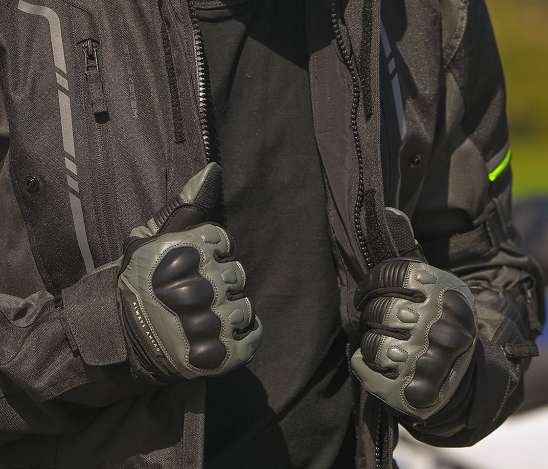 Pánske kožené rukavice na motorku s chráničmi kĺbov a priedušnou 3D sieťovinou na manžete, ktorá udržuje ruku v suchu a chlade.