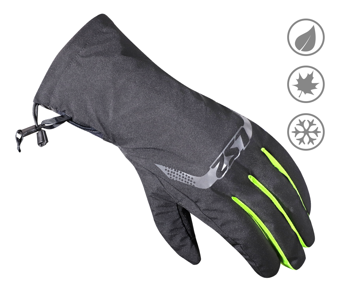 Vodeodolné motocyklové rukavice z pružného 75D polyesteru s membránou Fan-Tex, grafenovou tepelnou vložkou a supergrip dlaňou, doplnené o reflexné prvky a dotykové ovládanie.